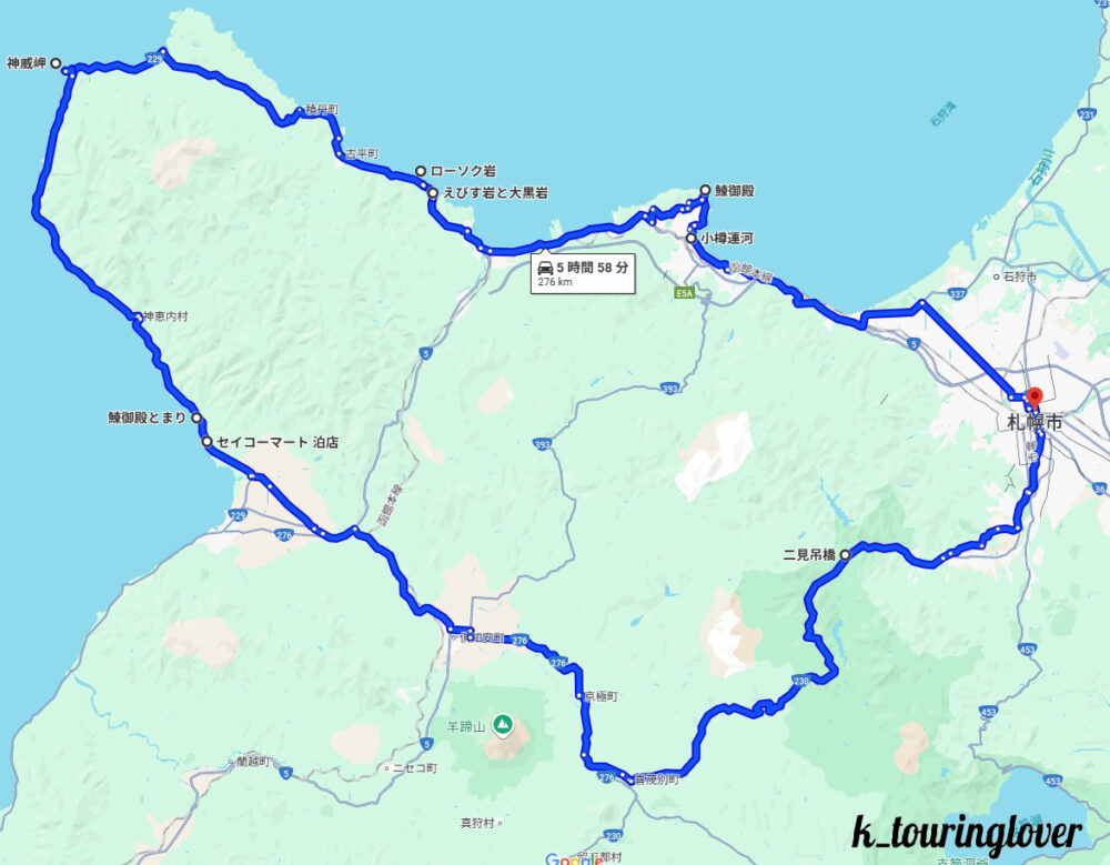 セイコーマート泊店 → 二見吊橋(定山渓) | 約95km |
